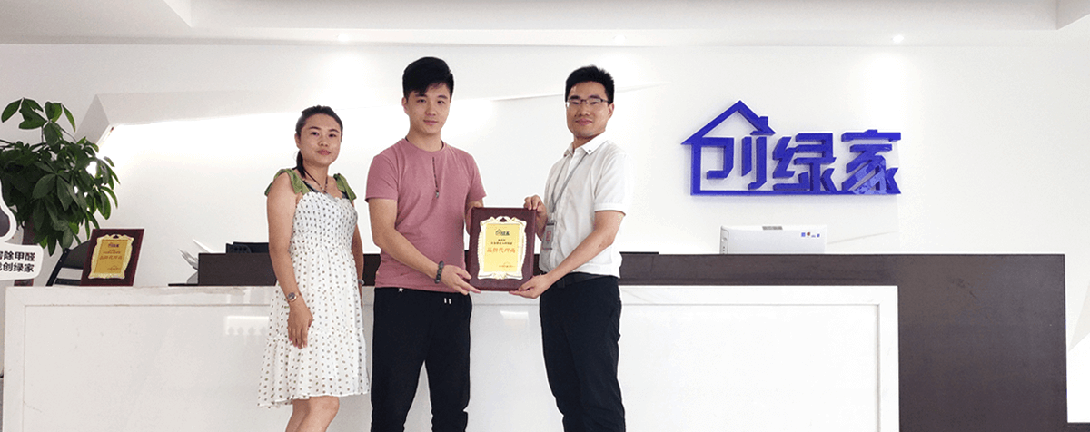 創綠家工廠自主研發生產納米級二氧化鈦(TiO2)光觸媒產品,結合行業獨創的分類除醛技術,針對不同板材內污染物,滲透板材內部高效分解甲醛,一次治理,質保10年,每年2次免費復檢。